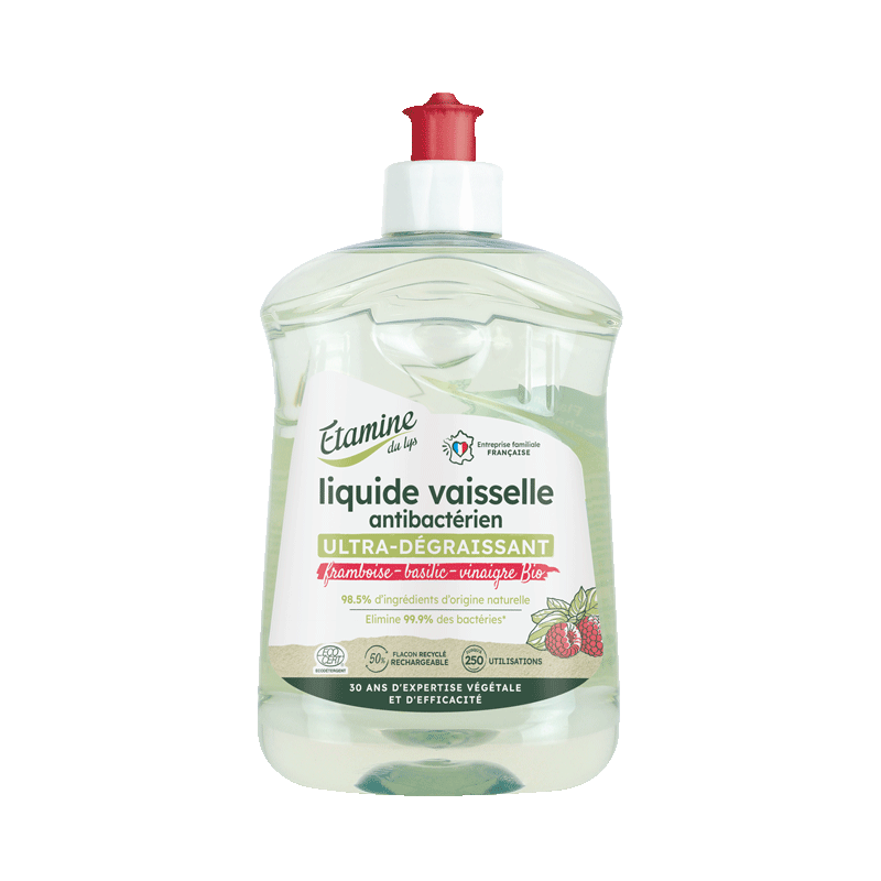 Le liquide vaisselle antibactérien Etamine du Lys élimine 99.99% des bactéries* présentent sur votre vaisselle.